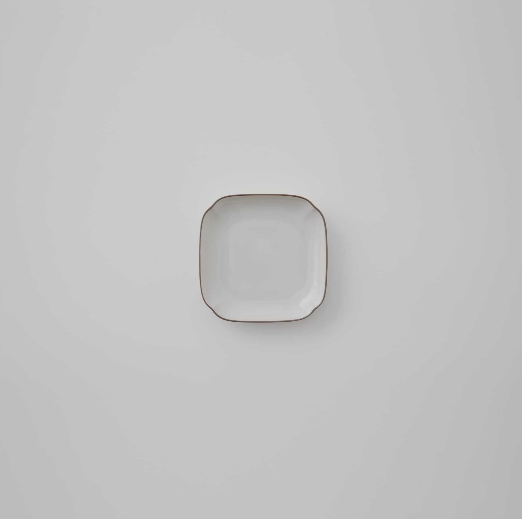 ②うつわの縁にある茶色のライン(縁錆)は、うつわ全体が締まって見え、洗練された上品な雰囲気を引き出してくれます。縁錆(ふちさび):磁器の伝統的な装飾技法。